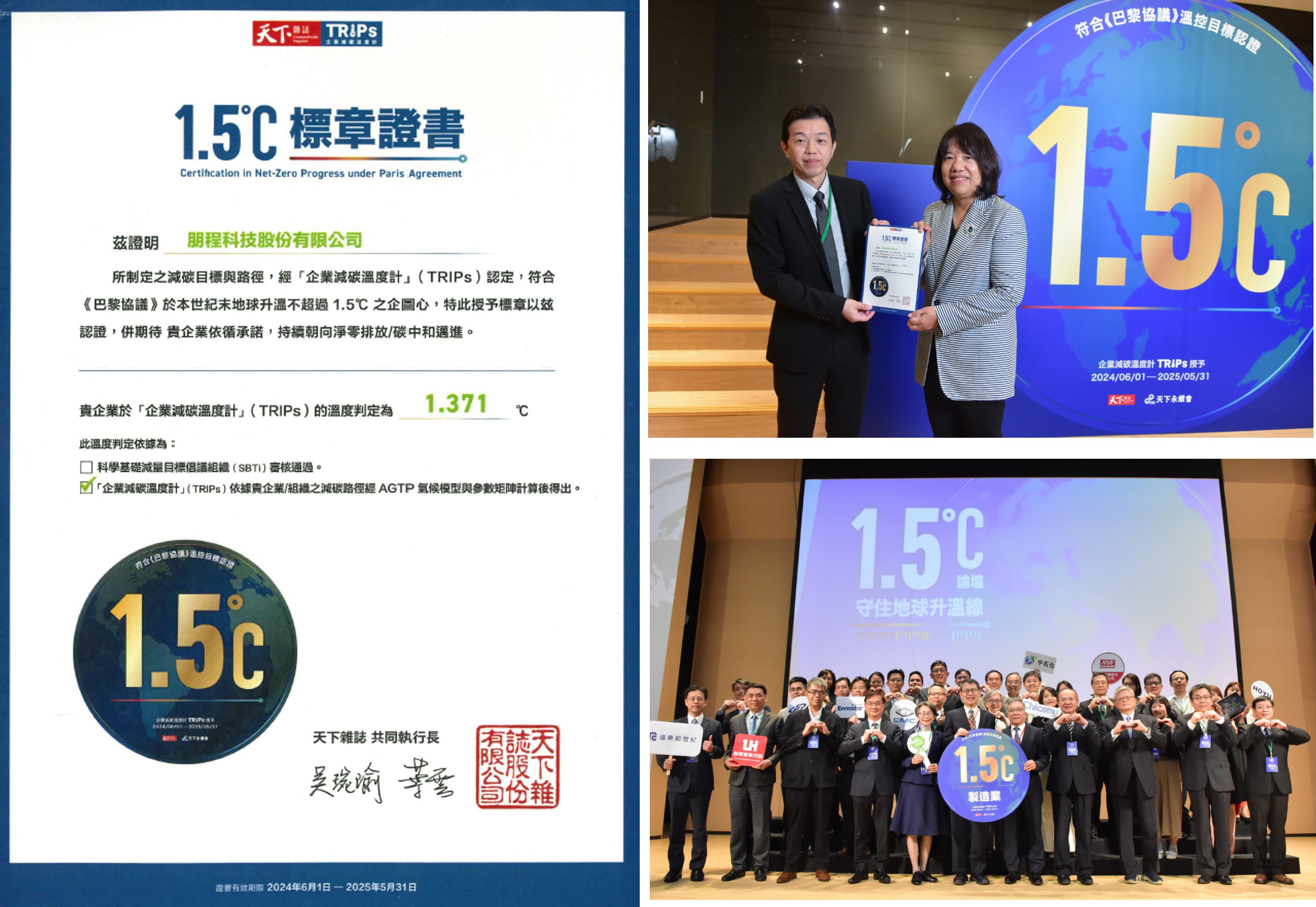 值得一提的是,朋程科技成績優異,達成了1.371℃的減碳目標,成功守住地球升溫線1.5℃溫控目標,展現了我們在環境保護和氣候變遷問題上的高度重視與積極行動。 未來,我們亦將持續執行溫室氣體減量策略並訂定短中長期目標,透過產品轉型效益,預期於2030年與2021年相比,達單位產品溫室氣體排放當量減量50%之目標。